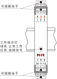 EVT:工作指示燈:儀表正常工作時,指示燈為綠色;輸入信號有故障報警時;指示燈為紅色。 35mm導軌式安裝,安裝時請注意卡位穩定、牢固。 請盡可能垂直安裝,以利于儀表內部熱量散發。