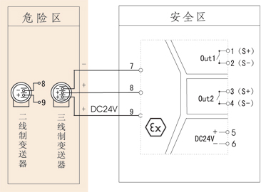 晶體管 | 型號舉例:NHR-A33-27-0/0。 變送器輸入檢測端隔離柵,輸入信號為:4-20mA,兩路輸出信號為:4-20mA。 |