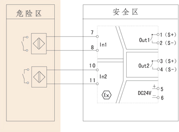 | 現(xiàn)場開關開路或輸入回路電流<1.2mA,輸出繼電器或晶體管不導通,通道紅色指示燈亮 |