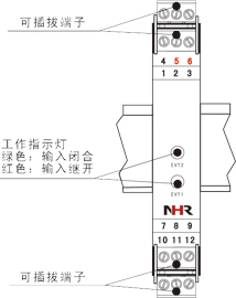EVT1/EVT2:工作指示燈:當輸入信號短接時,指示燈為綠色;當輸入信號斷開時,指示燈為紅色。 35mm導軌式安裝,安裝時請注意卡位穩(wěn)定、牢固。 請盡可能垂直安裝,以利于儀表內部熱量散發(fā)。