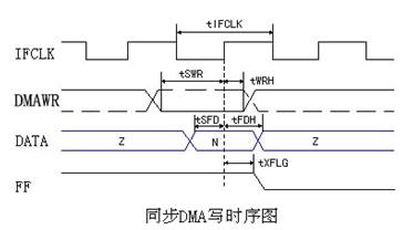 ■ 同步DMA寫數(shù)據(jù)FIFO模型及時序圖 |
