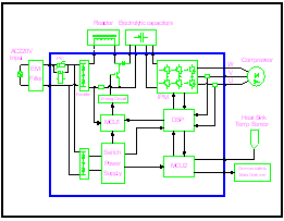 Consist of rectification, PFC control, PTC resistance, compressor driving, switching power supply, micro processor, and other peripheral circuits.