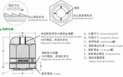 ■產(chǎn)品特點 ○防護等級IP68.5Bar壓強,符合IEC60529標(biāo)準(zhǔn)。 ○阻燃工程塑料制造(PA66 UL94-V0)。 ○防松動結(jié)構(gòu)設(shè)計獲實用新型專利技術(shù)。