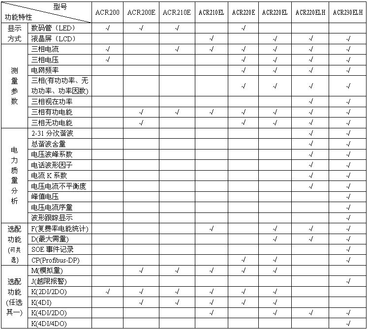 1、ACR300E、ACR310E、ACR320E(L)在選配K(4DI/4DO、8DI/4DO)功能時無脈沖信號輸出端口;