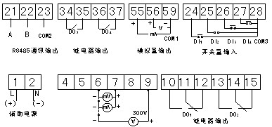 注:J(繼電器越限報警輸出)與第二路開關量輸出復用。