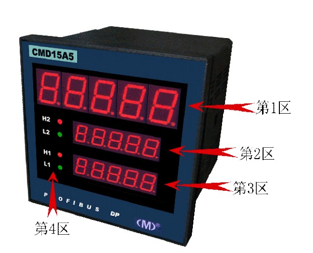 | ● 從上至下共3組00000~99999顯示范圍,每組均帶正負號共15個擴展特殊符號顯示; |
