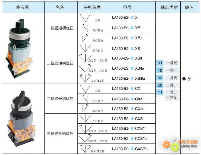 2..型號舉例:1常開觸點,短柄二位置旋鈕:LA130-22B2-10X