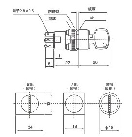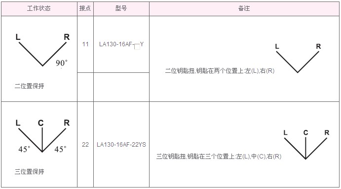 3.三位置鑰匙鈕鑰匙取出位置有兩種類型:(1).鑰匙在中間位置可拔出;(2).鑰匙在三個位置均可拔出。