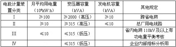 上表中電能計量裝置分類系根據用電量和重要程度劃分: 表2