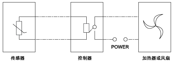 溫濕度控制器主要由傳感器、控制器、加熱器(或風(fēng)扇等)三部分組成,其工作原理如下圖所示: