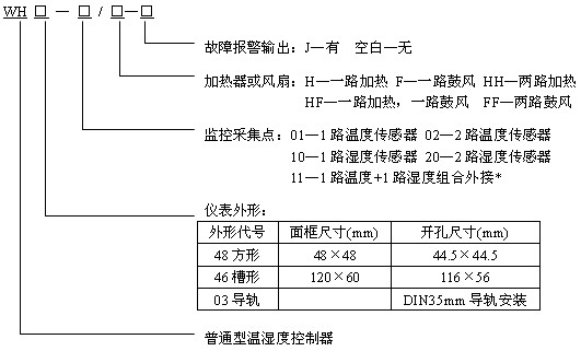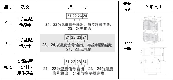 ●W-1為溫度傳感器,H-1為濕度傳感器,WH-1為溫濕度傳感器,控制器型號選定后已經(jīng)包括傳感器,無需另行選定;