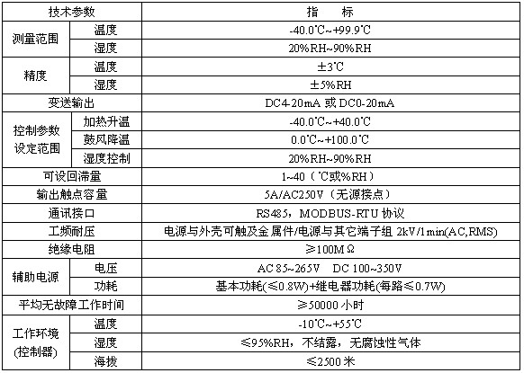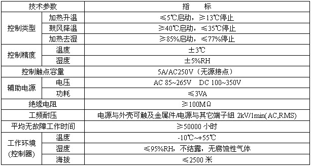 ● 控制器常規(guī)為環(huán)境濕度≥85%RH加熱除濕控制啟動,溫度≤5℃加熱升溫控制啟動,≥40℃鼓風(fēng)降溫控制啟動;