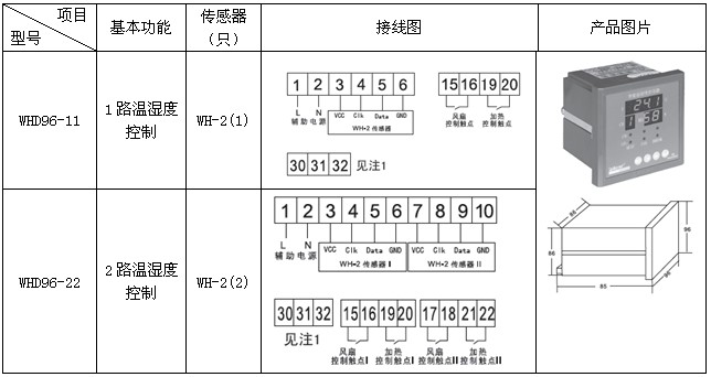 1、WHD48、WHD72、WHD90R最多可接1路溫濕度傳感器;