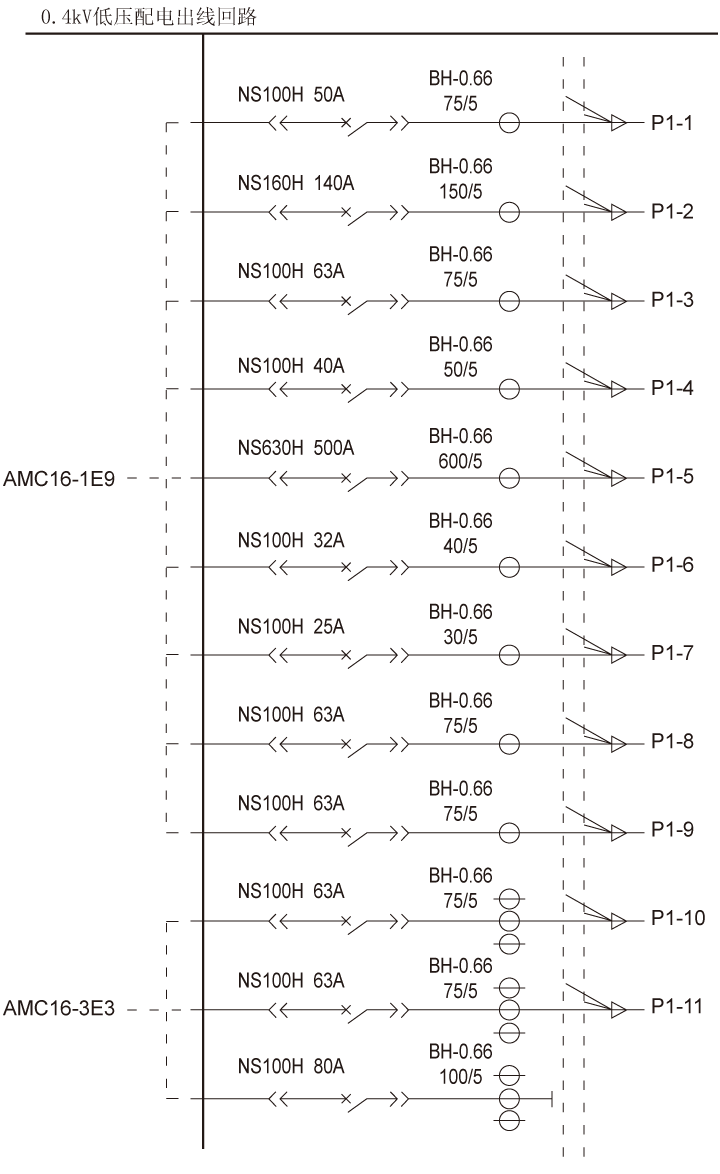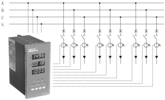 AMC16多回路監(jiān)控裝置主要應(yīng)用于多個配出回路的電參數(shù)的監(jiān)測,它將回路中的母線電壓、多個配出回路的電流、功率、電能集中測量和顯示,并可對各個回路的開關(guān)狀態(tài)集中監(jiān)測和顯示,以上各參量還可通訊輸出,實現(xiàn)了對監(jiān)控要求較簡單的配電出線回路的集中測量和監(jiān)視。一個AMC16多回路監(jiān)控裝置就能實現(xiàn)對多個回路的電參量的測量和開關(guān)狀態(tài)的監(jiān)測,大大方便了系統(tǒng)的接線、安裝、調(diào)試;節(jié)約了用戶的投資,降低了系統(tǒng)成本。