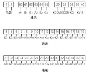 無源干接點(diǎn):Ki(i=1-32)與公共端KV12為各通道接入端,同時(shí)KCOM和KG短接。