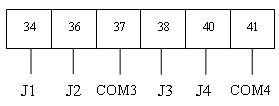 繼電器輸出(J1為脫扣輸出,J2、J3、J4為報警輸出)