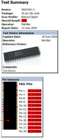 1)軟件可產(chǎn)生一詳細(xì)的測量報(bào)告, 包含集成電路相片。這份報(bào)告可用于深入分析好壞集成電路的差異具體原因。