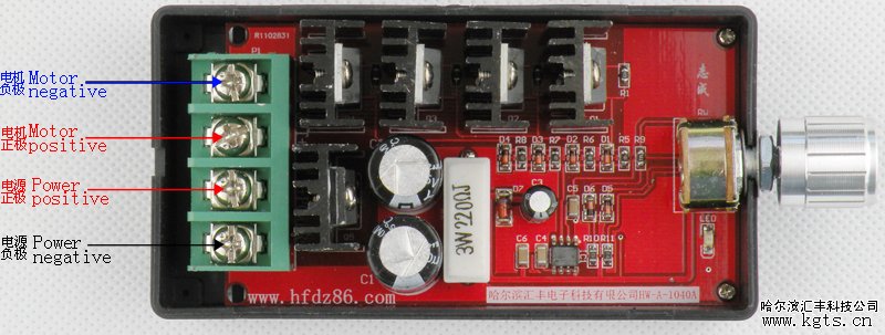 HW-A-1040型PWM直流調速器、是一種低損耗PWM技術、工作電壓范圍寬(實測DC9V至DC28V可正常工作)