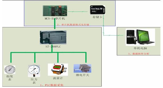 2. 再使用單片機技術,對PLC采集后的數據進行讀取,并按照一定的格式存儲在存儲設備中,存儲設備可以是U盤,存儲卡等;