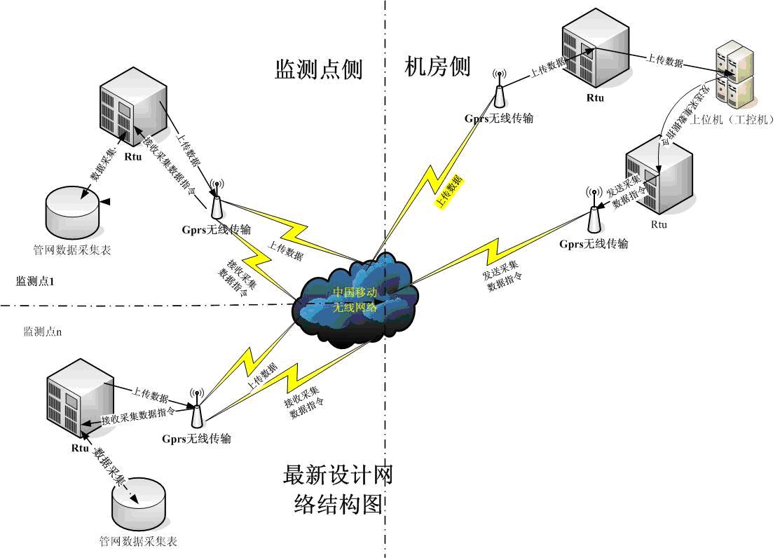 用戶的已有項目是通過RTU與數傳電臺結合的方式,完成遠程數據采集及傳輸工作,現由于特殊需要和考慮到目前項目所存在的弊端,需要對已有項目進行改造,決定采用工業GPRS模塊來代替數傳電臺,完成現有的項目功能。 |