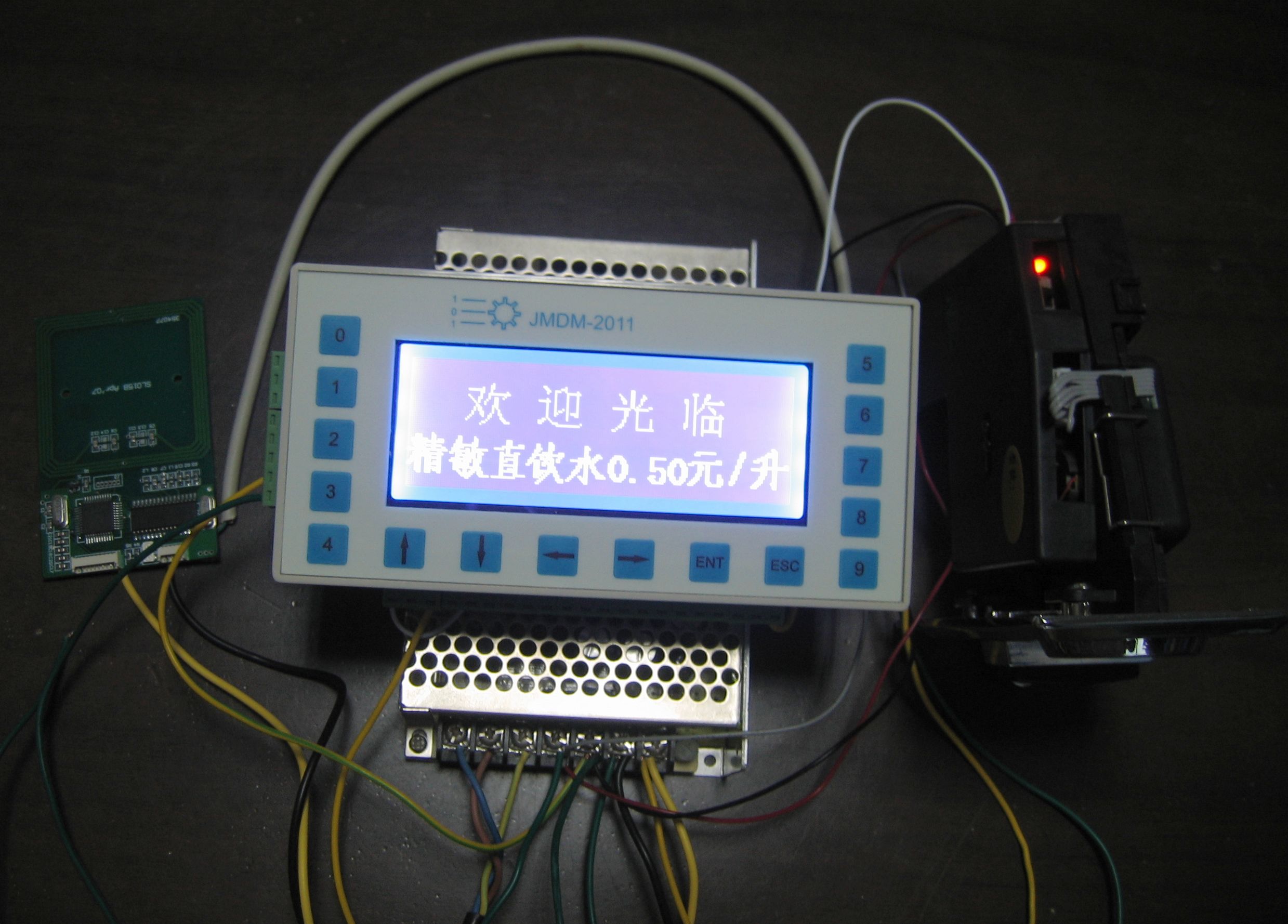 詳細內容: 精敏(JMDM)自動售水機控制系統采用深圳市精敏數字機器有限公司自主 研發的JMDM-2011工業控制器,實現了高精度、高速的定位、定時和速度控制。 JMDM-2011是目前業內功能較強、穩定可靠、抗干擾能力強的工業控制器, 具有極高的性價比,已經極大地提高了客戶的生產效率和經濟效益,以優異的性 能表現贏得了國內外眾多客戶的信任,并建立了穩固長久的雙贏合作關系。 目前已廣泛應用于氣缸、電磁閥、繼電器、步進及伺服電機、比例閥控制、 變頻器控制等高速、高精度模擬量輸入輸出、數字量輸入輸出場合。 在全國各地已成功、廣泛應用于稱重篩選器、滾輪送料機、自動售水機、制 袋機、沖床送料機、粉碎機、印刷機、切割機、壓粉機、壓力測試儀、液壓控制 器、激光控制器、多路溫度控制器等要求高精度、高速度控制的場合或設備,并 遠銷海外。 一、制水控制部分 低壓閥 在低壓閥信號接通的情況下,如果低壓閥沒有接通則停止制水。接通電源制 水水泵起動,同時起動沖洗電磁閥,開機90 秒后如果沒有檢測到缺水信號則停主 機和停止沖洗,如果檢測到缺水信號則停止沖洗進行制水直到制滿,在制水過程 中每隔90分鐘起動沖洗電磁閥30秒。以后每檢測到缺水信號則起動制水水泵, 每隔90分中沖洗30秒(最好是沖洗時間在60 秒范圍內可調), 水泵規格及參數:電壓AC220V 電流7A 電磁閥規格及參數:電壓DC24V。 二、臭氧機的控制 接通電源起動臭氧機10 分鐘,以后每8 小時起動臭氧機開機90 分鐘。 (最好 是開臭氧時間在60分鐘范圍內可調)。 臭氧機規格及參數:電壓AC220A電流1A 三、投幣器計費 兩個投幣器,分開接入互不干涉,每個脈沖代表0.1元(或0.5元或1元)撥碼開關切 換。按每0.1元購0.5升或1升進行換算水量,換算有撥碼開關切換。 投幣器規格及參數:電源是DC12V,脈沖信號,脈沖信與電源共地線。 當水箱的低液位接通投幣器電源關閉,當水箱低液位斷開則接通投幣器電源。 四、打水操作 打水有兩個電磁閥, 每個電磁閥有一個出水按紐和一個暫停按紐。水箱內低 液位沒有接通,投幣后,按出水按扭則出水,按暫停按扭則停止出水。按暫停3分鐘 后顯示歸0并回到起始畫面在出水的時候流量表計量,當水打完后自動停止,顯 示歸0并回到起始畫面。流量表是霍爾元件的脈沖信號。每29個脈沖代表1升 水。電壓DC24V,電源2根線,信號2根線。 在打水過程中如果出現故障位信號接通,投幣器電源關幣停止交易,但故障畫 面不顯示直到交易完成。 打水電磁閥規格及參數:DC—24V 五、日光燈和打水燈控制 日光燈用光控信號控制,每天24:01—17時燈滅,17:01—24:00燈亮。 打水燈是在日光燈亮的前提下,投幣后打水燈亮,顯示歸零時打水燈滯后 20秒關閉。 打水燈DC12V。 六、液晶顯示 1. 初始畫面 在制水正常,無人交易的情況下,顯示”歡迎光臨”字高20毫米,在歡迎光臨的 下面顯示” 精敏直飲水每升0.X元。價格與撥碼開關對應。 歡 迎 光 臨 精敏直飲水每升0.X元 2. 交易畫面 投幣后,顯示畫面 金額 水量 000.0 000.0 3. 故障畫面 故 障 勿 投 幣 故障原因 故障原因有:1、缺水 2、水壓低(水壓低不立即顯示,故障畫面在缺水時才一并顯示) 4. 數據畫面 在按扭的觸發下顯示 累計收入本次收入 000000.0 00000.0 用于讀取累計數據和本次進入機臺錢幣數據。 例如:在正常營業狀態下 營業中,顯示為“歡迎光臨,精敏直飲水每升0.2元” 若事先按下半價按鈕,則顯示為“歡迎光臨,精敏直飲水每升0.1元” 投入五角錢幣后,顯示為“金額0.5,水量2.5” 若事先按下半價按鈕,則顯示為“金額0.5,水量5.0” 4、在放水過程中,金額不變,但水量隨著放水不斷下降,直至降至0 七、在電路板上有停售、營業中的畫面顯示指示燈 當水箱缺水時(處于低水位),液晶屏顯示停業畫面; 當水箱有水,能正常營業時,液晶屏顯示運行畫面; 八、外部提供DC—24V、12V 二路組合開關電源。 九、參數設置 1. 如何進入設置狀態 上電后控制器直接進入運行狀態,此時按面板上的“ENT“按鈕可進入設置 狀態。 2. 如何修改參數 上﹑下﹑左﹑右四個方向鍵用于移動光標,選擇要改變的數字。當光標到 達要改變的數字時,輸入你想設定的數字,數字就定下來了。 設置狀態的特征是液晶屏的右半邊有一個光標,且按上﹑下﹑左﹑右四個方 向鍵時可使光標移動。 3. 如何設置參數 參數設置畫面共有三個,即: 第一設置畫面: 實時時鐘時間:即設定控制器的內部工作實時時間,因日光燈控制需要實時 時間,故需要設定系統的小時分鐘參數; 0000——2359 單位:小時 +分鐘 沖洗開啟時間:即單次啟動沖洗電磁閥工作的時間; 0000——9999 單位:秒 臭氧開啟時間:即單次啟動臭氧電磁閥工作的時間; 0000——9999 單位:秒 延時熄滅時間:即在日光燈和打水燈點亮的情況下,單次打水操作完成后, 打水燈延時熄滅的時間; 0000——9999 單位:秒 第二設置畫面: 請輸入密碼: 000000—999999;密碼輸入正確即可進入第三個設置畫面; 第三設置畫面: 每升水價格(元): 0.00-9.99 4. 在參數設置畫面下按ESC 鍵就退出參數設置畫面,參數自動保存。