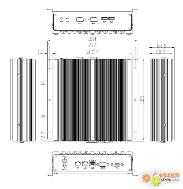 - VGA / 2個千兆網口/ 4*USB / 音頻/ 3*COM
