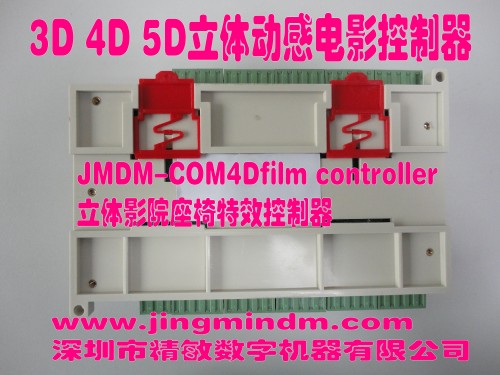 JMDM 4D影院控制系統是深圳市精敏數字機器有限公司自主研發成功的一款工業級高可靠4D影院控制系統解決方案,又可稱為JMDM-4D film立體動感4D影院座椅特效控制系統,包括兩部分:控制器硬件(JMDM系列多款4D影院控制器)和控制軟件(JMDM-4Dfilm editor and player)。