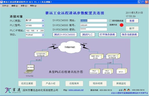 該軟件的升級,未注冊版本提供了部分PLC產品的配置參數,可以用來連接到賽遠或者合作伙伴的遠程演示系統,通過SY-RCS連接現場的SY-RSCM300系統,穩定又方便。