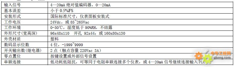* 連接4—20mA 絕對值編碼器,4 位數(shù)碼顯示,經(jīng)濟型數(shù)顯表;