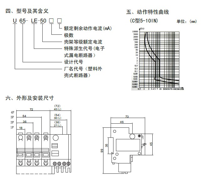 U65EL-50系列漏電斷路器由U65高分?jǐn)嘈⌒蛿嗦菲骱吐╇娒摽燮髌囱b而成漏電 斷路器電流動作為電子式漏電斷路器,主要由零序電流互感器、電子組件板、漏電脫扣器及帶有過載和短路保護(hù)的斷路器組成。