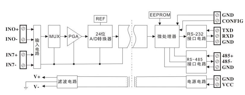 圖1 SYAD08T 產(chǎn)品原理及外接端子框圖