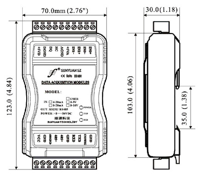 概述 SYAD08T系列產(chǎn)品實(shí)現(xiàn)傳感器和主機(jī)之間的信號(hào)采集,用以檢測(cè)模擬信號(hào)或控制遠(yuǎn)程設(shè)備。通過(guò)軟件的配置,可用于多種傳感器類型,包括:模擬信號(hào)輸入,模擬信號(hào)輸出,和數(shù)字信號(hào)輸入/輸出,SYAD08T系列產(chǎn)品可應(yīng)用在 RS-232/485總線工業(yè)自動(dòng)化控制系統(tǒng),熱電偶信號(hào)的測(cè)量、監(jiān)視和控制,小信號(hào)的測(cè)量以及工業(yè)現(xiàn)場(chǎng)信號(hào)隔離及長(zhǎng)線傳輸?shù)鹊取?BR> 產(chǎn)品包括電源隔離,輸入輸出信號(hào)隔離、線性化,A/D轉(zhuǎn)換和RS-485串行通信。每個(gè)串口最多可接256只 SYAD08T系列模塊,通訊方式采用ASCII字符通訊協(xié)議或MODBUS RTU通訊協(xié)議,其指令集兼容于ADAM模塊,波特率可由用戶設(shè)置,能與其他廠家的控制模塊掛在同一RS-485總線上,便于計(jì)算機(jī)編程。 SYAD08T系列產(chǎn)品是基于單片機(jī)的智能監(jiān)測(cè)和控制系統(tǒng),所有的用戶設(shè)定的校準(zhǔn)值,地址,波特率,數(shù)據(jù)格式,校驗(yàn)和狀態(tài)等配置信息都儲(chǔ)存在非易失性存儲(chǔ)器EEPROM里。 SYAD08T系列產(chǎn)品可以測(cè)量各種傳感器信號(hào),包括熱電阻,熱電偶,應(yīng)變片等,具體選型請(qǐng)參看不同型號(hào)產(chǎn)品所支持的類型編碼。 SYAD08T系列產(chǎn)品按工業(yè)標(biāo)準(zhǔn)設(shè)計(jì)、制造,信號(hào)輸入/輸出之間隔離,可承受3000VDC隔離電壓,抗干擾能力強(qiáng),可靠性高。工作溫度范圍- 45℃~+85℃。