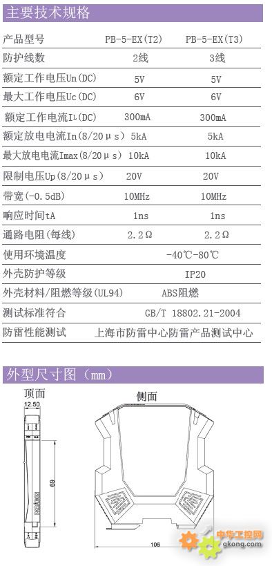 12.5mm寬超薄設計,節省空間通路電阻小、阻抗低高達10kA(8/20μs)抗浪涌能力端子接地,通過DIN35mm導軌安裝本安防爆認證Ex 適合熱電阻、熱電偶等信號輸入