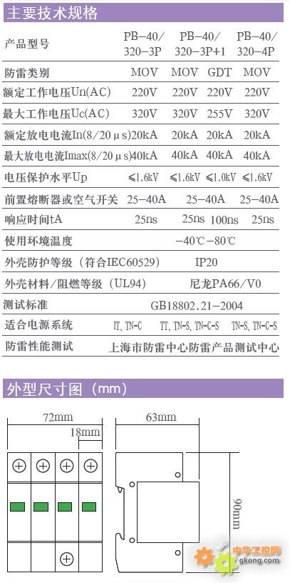 3P54mm,4P72mm寬度設計,節省空間工作狀態指示:透明窗綠色:正常 透明窗紅色:失效浪涌模塊:支持熱插拔,維修方便DIN35mm導軌安裝適合三相交流電源適合安裝于防雷區LPZ2、LPZ3