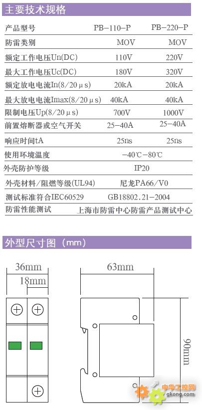 36mm寬度設計,節省空間工作狀態指示:透明窗綠色:正常 透明窗紅色:失效浪涌模塊:支持熱插拔,維修方便DIN35mm導軌安裝適合直流流電源適合安裝于防雷區LPZ2、LPZ3