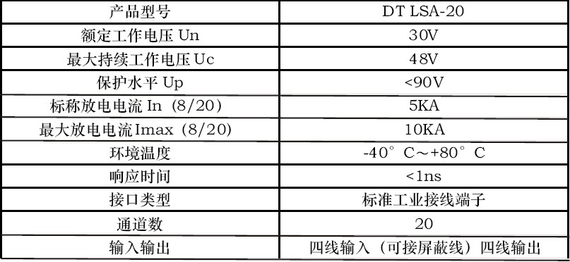 DT LSA-20信號防雷器適用于模擬信號的防雷,可對采集儀進行有效保護,采用泄流、鉗位、穩壓的原理,實現了高效可靠的抗高壓脈沖沖擊功能和準確的鉗位電壓,響應迅速,使設備免受雷擊時過電壓和工業涌浪電壓沖擊的損壞,產品安裝方便。