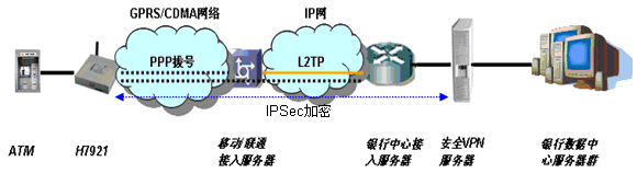 現行的GPRS&CDMA無線網絡信道傳輸編碼方式均對傳輸數據都有加密保護,因此GPRS&CDMA通道本身是安全的,另GPRS&CDMA均可以利用VPN技術在移動數據公網上建立銀行交易系統內部虛擬專用網,保證了銀行終端無線接入的可靠性和安全性。