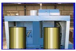 1. 多種高靈敏度的自停裝置:如斷頭自停、滿桶自停、涌條自停、空卷自停、繞羅拉繞皮輥?zhàn)酝!⒎蛛x和牽伸皮輥加壓不足自停、飛花堵、漏條偏移過大自停及各種安全自停等; 2. 采用多種自動裝置:如自動換筒(見下圖)、自動上卷、平臺自動清潔等等。