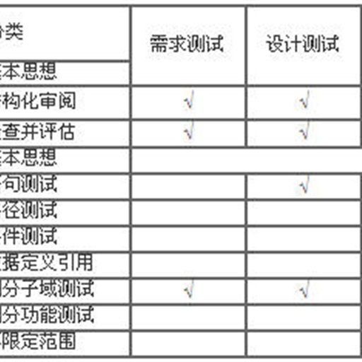 測試方法不僅要保證測試事例具有發現缺陷的高可移植性,而且還要保證測試事例設計的經濟有效。因此,在實際測試工作中,將嵌入式系統的測試方法 分類如下:根據測試是否動態運行被測程序分為靜態測試方法和動態測試方法;根據測試階段分為需求測試方法、設計測試方法、編碼測試(單元測試、集成測試) 方法及系統測試方法;根據測試目的分為功能測試、性能測試、可靠性測試(容錯性、可恢復性、成熟度測試*及信息安全保護等測試。參看表1嵌入式軟件測試方 法對照。其中“√”代表相關性。所有這些方法的具體定義這里不一一介紹。由于不同的嵌入式系統面向的應用不同,測試方法的側重也很不相同。本文后面將對一 個具體的便攜式信息處理嵌入式系統(PDA、便攜式翰林電子書)的系統測試方法詳細說明。