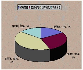 電力儀表用屏蔽雙絞線相互連接起來,與通訊服務器、交換機、工業級計算機等組成一個后臺監控管理系統,實現對配電系統的監控以及電能分項計量的管理。系統實現的主要功能: (1)實時采集與顯示運行參數,如電壓、電流、功率、功率因數,有功電能等,為正常運行時的計量管理、事故發生時的故障原因分析提供依據。 (2)監視電氣設備運行狀態,如高、低壓進線斷路器等各種類型開關當前分、合狀態,是否正常運行,如發現故障自動報警。 (3)對建筑物內所有設備的用電量進行記錄與統計,包括動力用電、照明與插座用電、空調用電、特殊用電等電能分項計量以及分時復費率計量等,并可生產電能計量報表供用戶查詢使用。 4、應用案例 上海浦東某圖書館是一個高能耗大型公共建筑,總建筑面積60885平方米,圖書館變配電系統包括高壓配電室和低壓配電室,其中高壓配電室有高壓配電柜10面,低壓配電室有低壓配電柜31面。在高壓進線柜、PT柜及配出柜上安裝中壓微機保護裝置,其它各個低壓回路上安裝電力儀表,對各個回路進行電能分項計量,各樓層按用電類型分別安裝DTSF1352導軌式三相四線電表,對用電進行分項計量,所有的中壓微機保護裝置和電力儀表均通過現場總線進行組網,在中控室對現場各回路用電狀況實現集中監控,對用電狀況實行監測,并進行數據庫存儲,自動生成用電日報表、月報表、年報表以及電能分項計量統計報表等,為管理人員的分析、決策提供參考。 該項目電能分項計量管理系統采用三層網絡結構,站控管理層是人機交互的直接窗口,采用研祥工業計算機作為監控主機,并附帶液晶顯示器、打印機等設備,山特UPS電源在整個系統發生供電問題時,可在一定時間內保證站控管理層設備的正常運行。通訊管理層主要由通訊服務器和交換機等組成,該層是數據信息交互的橋梁,負責對現場設備回送的數據信息進行采集與傳輸的同時,轉達上位機對現場設備的各種命令。現場設備層的電力儀表主要為ACR系列多功能電表和ADL系列導軌式電表,低壓進線回路及重要饋線回路選用ACR系列多功能電表,普通饋線回路及動力箱、照明箱中選用ADL系列導軌式電表,實現對現場各回路、各樓層的電能分項計量。 監控室電能管理系統通過現場設備和通信系統提供的傳輸通道,完成對各用電回路的數據采集,信息經分析、處理,以報表、圖形等多種形式供值班員參考,使值班員能夠便捷的掌握系統的運行及電能使用狀況,對電能分項計量,及時發現、糾正用電浪費現象,從而節約用電。在需要時,還可提供快捷的遠程控制手段,完成對設備運行狀態的改變以及事故情況的處理。圖5給出了圖書館電能分項計量查詢表,很清楚的顯示出各分項用電的使用情況。圖6為系統給出的圖書館照明、空調及插座等分項用電量的餅圖,很直觀地顯示出分項用電量的百分比。