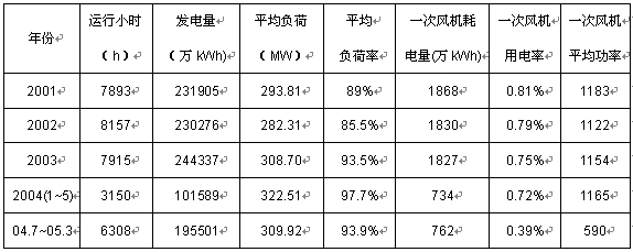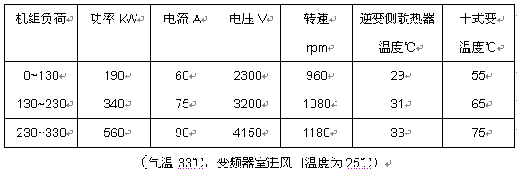 5.5 與西門子DCS系統的連接 一次風機變頻控制與#7機西門子DCS的接口如下:首先,DCS上原一次風機的控制邏輯基本保持不變,控制對象改為一次風機的6KV動力電源,新增了兩臺變頻器的控制和調節。為了防止運行人員誤啟動未滿足條件的變頻器,我們增加了變頻器的啟動條件,即當該變頻器就地已準備好且其指令小于5%時才允許啟動變頻器。對于原一次風機的控制邏輯,其跳閘保護邏輯保持不變,也即保持其安全性不變,在機組發生異常情況下能快速切斷一次風量及燃料,以確保機組的安全,在此基礎上增加了啟動條件:對應變頻器的進、出線開關處于合閘狀態或其旁路開關處于合閘狀態,這樣能有效防止運行人員未檢查就地電源回路而匆忙合閘的弊端。 對于變頻器的調節,我們主要解決了鍋爐主控中所需風量和變頻器轉速之間的對應關系,將不同負荷所需的不同風量,轉換成不同的對應轉速。通過反復研究變頻器廠家提供的資料及本廠鍋爐的特性,我們設計了適合于本廠鍋爐風量特性的變頻調節PID邏輯,具體地說主要有:四層一次風量調節擋板的開度指令、鍋爐主控的風量要求、兩臺變頻器的指令平衡。通過以上參數的邏輯組態,實現一次風壓力的可靠調節。通過機組啟動后的多次擾動試驗,將其PID參數進行了多次的優化,真正做到了一次風壓力的穩定可靠調節。 和原一次風機進口調節擋板進行調節一次風量相比較,由于擋板存在熱脹冷縮問題,在熱態工況下,曾多次發生進口調節擋板卡澀,無法進行調節,并曾發生由此而使得執行機構的鏈桿拉斷,從而導致風量無法調節,使得磨煤機無法啟動,嚴重影響機組的出力。而變頻改造后,進口調節擋板平時處于全開狀態,無需參與調節,利用變頻器的轉速來進行調節其一次風量,調節特性平穩可靠,線性度好。 6 運行情況 機組負荷在130MW以下時,一套制粉系統投入運行;機組負荷在130~230 MW時,二套制粉系統投入運行;機組負荷在230~330MW以下時,三套制粉系統投入運行;在以上這三種工況下,維持一次風壓在9.0kPa時,變頻器的主要參數如下: 7 改造費用 我廠以臺電生[2004]58號文向東南公司上報了“關于#7A、#7B一次風機變頻改造費用的請示”,東南公司以東南發電生[2004]37號文批復了該項目,項目實際投資額近550萬元。 8 效益分析 8.1 節電效益 #7A、#7B一次風機變頻控制控制改造后,系統在經濟性上有了很大的改善。根據運行提供的廠用電電量積數計算,#7A、#7B一次風機運行8個月來的平均功率為590kW,發電機平均功率為306MW,見下表。 再查閱2001~2003年統計年鑒有關數據,得知機組的平均功率為297MW,計算得#7A、#7B一次風機的平均功率為1150kW。#7A、#7B一次風機控制電源及室內空調總功率為15kW。2臺一次風機變頻改造后節省的功率為:2*1150-2*590-15=1105 kW 以年運行8000小時計算節電:1105*8000/10000=884萬kWh 該項目總投資約為550萬元,使用時間15年。 以0.20元/ kWh計算,年節電經濟效益為: 884*0.20-550/15=140.13萬元 稅后利潤:140.13*(1-33%)=93.89萬元 8.2 其他效益 8.2.1 與原擋板調節相比,變頻改造后加快了一次風量的調節速度,提高了機組的穩定性。 8.2.2 避免了電機啟動時大電流沖擊對電機的損壞,延長了電機和擋板的檢修周期和壽命,減輕了維修工作量。 [結束語] #7A、#7B一次風機變頻器至今已投運8個月,性能穩定,運行情況良好。今后要加強設備點檢及運行巡檢,保持室內環境衛生,在室溫高于30℃時開啟室內空調機。做好日常維護工作,每季度對柜門濾網進行一次清灰,以避免其他廠曾出現的因超溫而跳閘的現象。