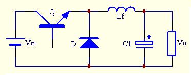 Q導通時為電感Lf儲能階段,此時電源不向負載提供能量,負載靠儲于電容Cf的能量維持工作;Q關斷時,電源和電感共同向負載供電,此時還給電容Cf充電。變換器必須接負載,不然會因能量不斷送到負載端而使Vo不斷升高而損壞。