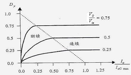 由圖可見,在Vo=const時,如果Dy<0.5,即Vo<Vin,變換器很容易進入電感電流斷續區。