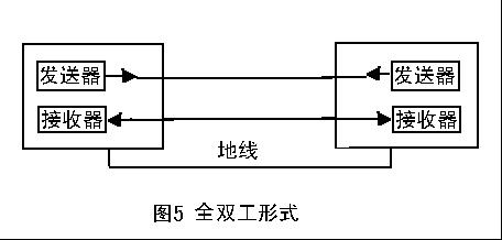 在全雙工方式中,每一端都有發(fā)送器和接收器,有兩條傳送線,可在交互式應用和遠程監(jiān)控系統(tǒng)中使用,信息傳輸效率較高。