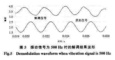從圖5可以看出,系統能較準確地解調出原始信號,其誤差主要來源有光纖傳感耦合器的非對稱、A/D量化誤差、模擬電路中殘留的熱噪聲干擾等等.