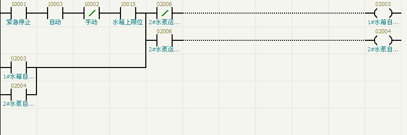 設(shè)備工藝流程為:水箱蓄水---上限位到水泵1抽水----下限位到水泵1停止---繼續(xù)蓄水----上限位到水泵2抽水----下限位到水泵2停止