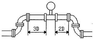 縱端面采用特殊形線的變徑整流器(己申報國家專利),具有整流,提高流速及改變流速分布的多重作用,其結(jié)構(gòu)尺寸小,長度僅為工藝管內(nèi)徑的1/3,可以直接卡裝在儀表的兩端,不僅不需要另外附加直管道,而且可以降低儀表對上游直管道的要求。實驗表明:儀表上游阻力件為一個平面內(nèi)的兩個90°彎頭 在一般情況下,渦街流量計上游側(cè)應(yīng)加裝大于20倍管道內(nèi)徑長度的直管道,而渦街流量計加裝了變徑整流器大大降低了對上游測直管道長度的要求,其阻力遠(yuǎn)遠(yuǎn)小于傳統(tǒng)的變徑管。更主要的是,可使下限流速降為原來的1/3,量程比提高到15:1以上。 ’