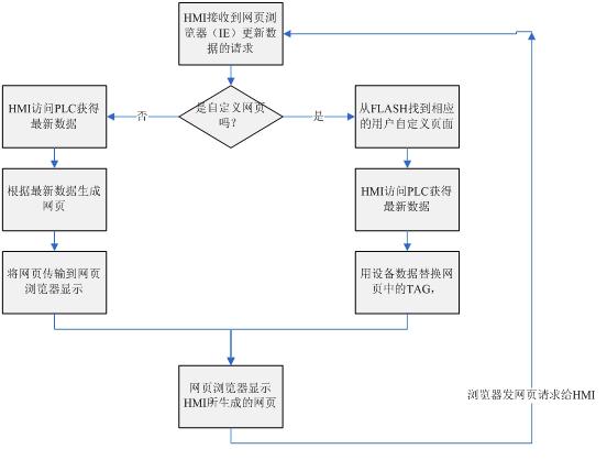 HMI WEBSERVER的技術原理 HMI內置一個專門的WEB服務器負責接收來自網頁瀏覽器的請求。當客戶接到WEB響應請求時,HMI將按如下流程進行響應。  靜態網頁 靜態網頁是HMI收到WEB訪問請求之時,HMI根據客戶所做的設置自動生成的網頁。這個網頁的格式比較簡單而且固定,但可以顯示客戶所需要的數據。客戶也可以同這個網頁來操作HMI。實現遠程監控 用戶自定義網頁 用戶自己制作網頁,把制作好的網頁放入到HMI,當客戶通過WEB訪問HMI時,那么可以在用戶的網頁瀏覽器上顯示用戶事先制作好的網頁。