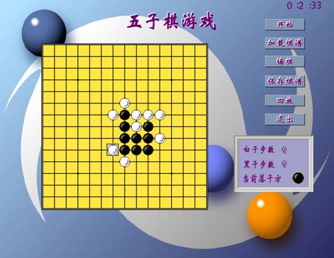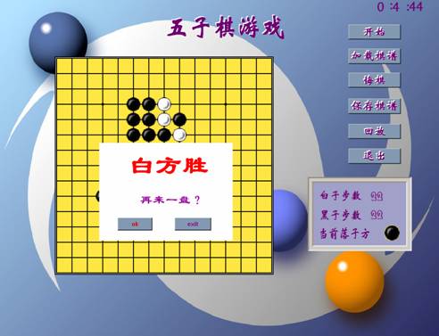 - 按照五子棋游戲規(guī)則鼠標點擊落子、判定勝負。