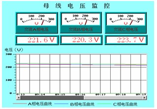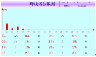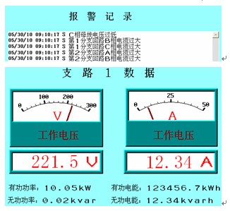 主要檢測數據對象有母線電流、電壓、功率、電能、母線諧波數據,各個支路電壓、電流、功率、電能,及各個支路的分合狀態。顯示以數字顯示、折線圖、條形圖為主,見圖3。